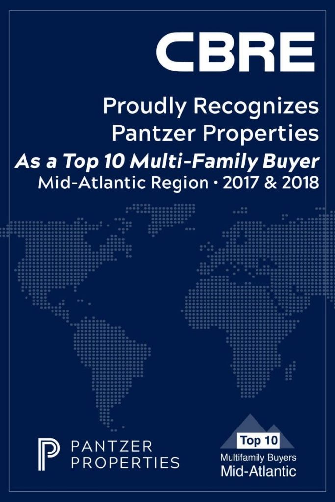 CBRE proudly recognizes Pantzer Properties as a Top 10 Multi-Family Buyer for the Mid-Atlantic Region for 2017 / 2018.